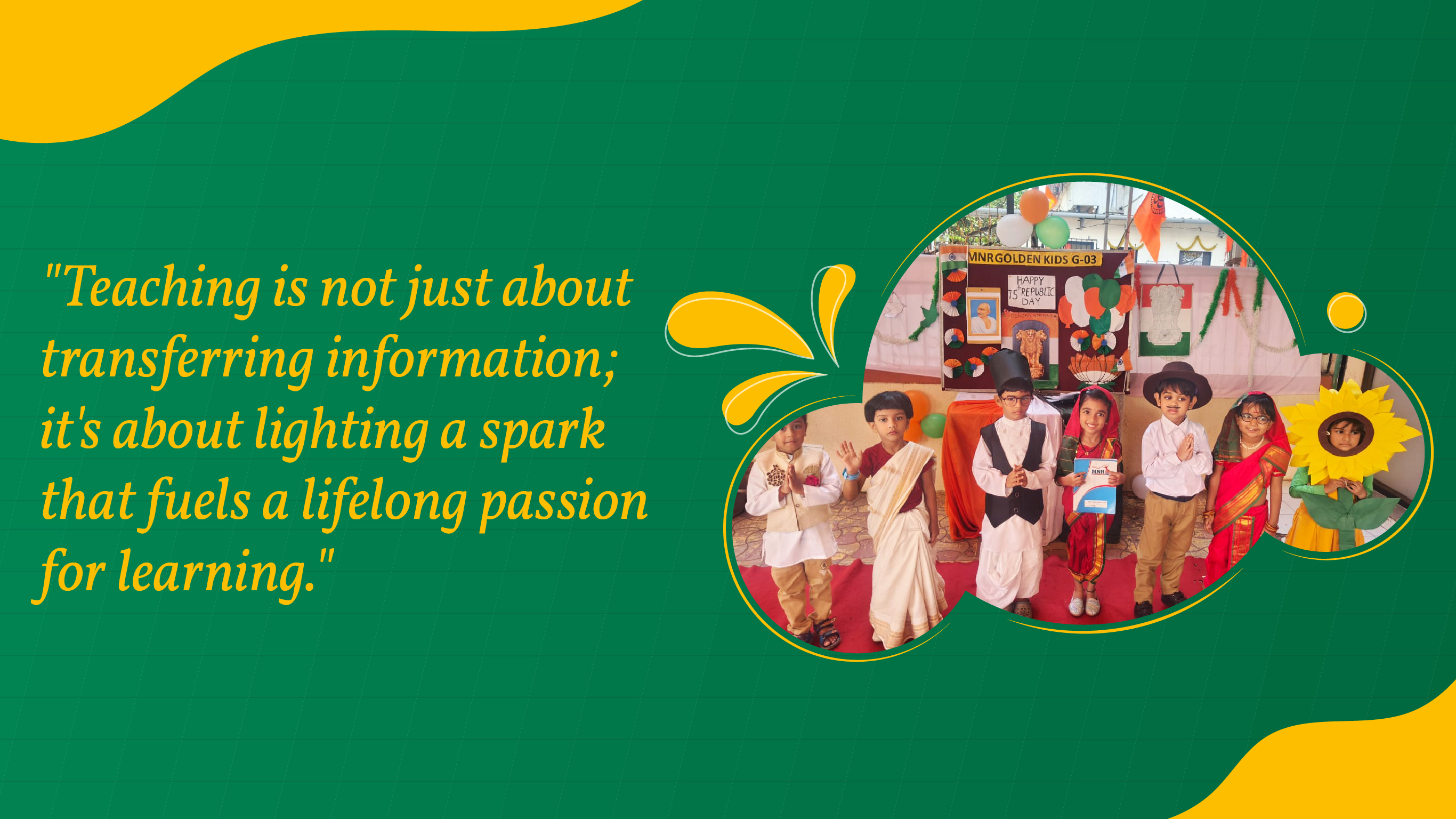 Our journey with MNR Golden Kids School has been nothing short of fantastic! The personalized attention, engaging curriculum, and supportive community create an enriching atmosphere for our child's growth and development.Mrs. P. Gayathri Software Engineer, Purpel Soft Tech.