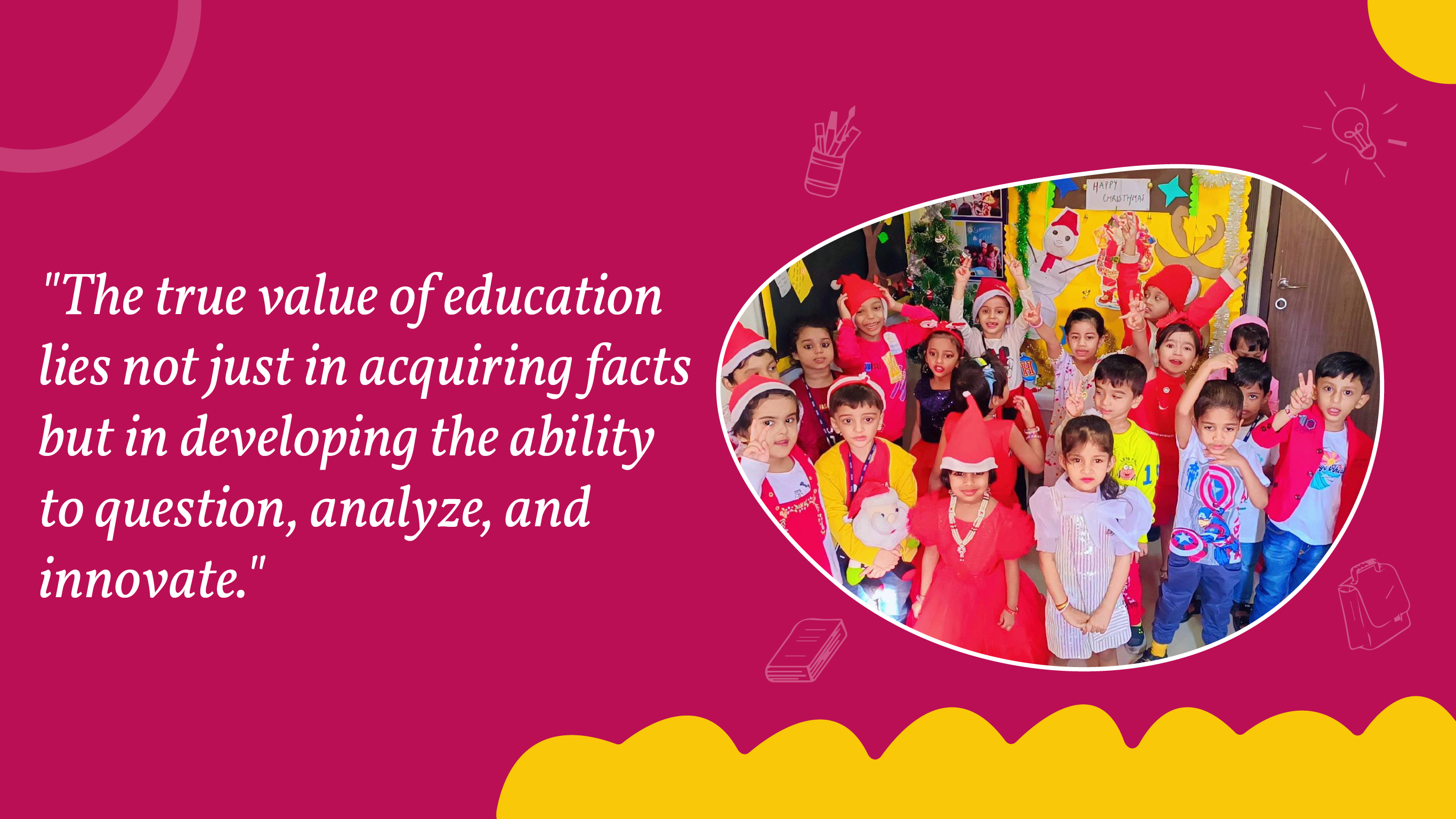 Religion and History at this age requires a thoughtful and age-appropriate approach. The primary focus should be on cultivating a sense of curiosity, understanding diversity, and laying the groundwork for future exploration. At the pre-primary stage, introducing religion and history can be done in a simple and age-appropriate manner, focusing on basic concepts and values through Cultural Celebrations, Stories and Morals with Picture Books, by Telling about Historical Places , Traditions, Patriotic persons , etc...